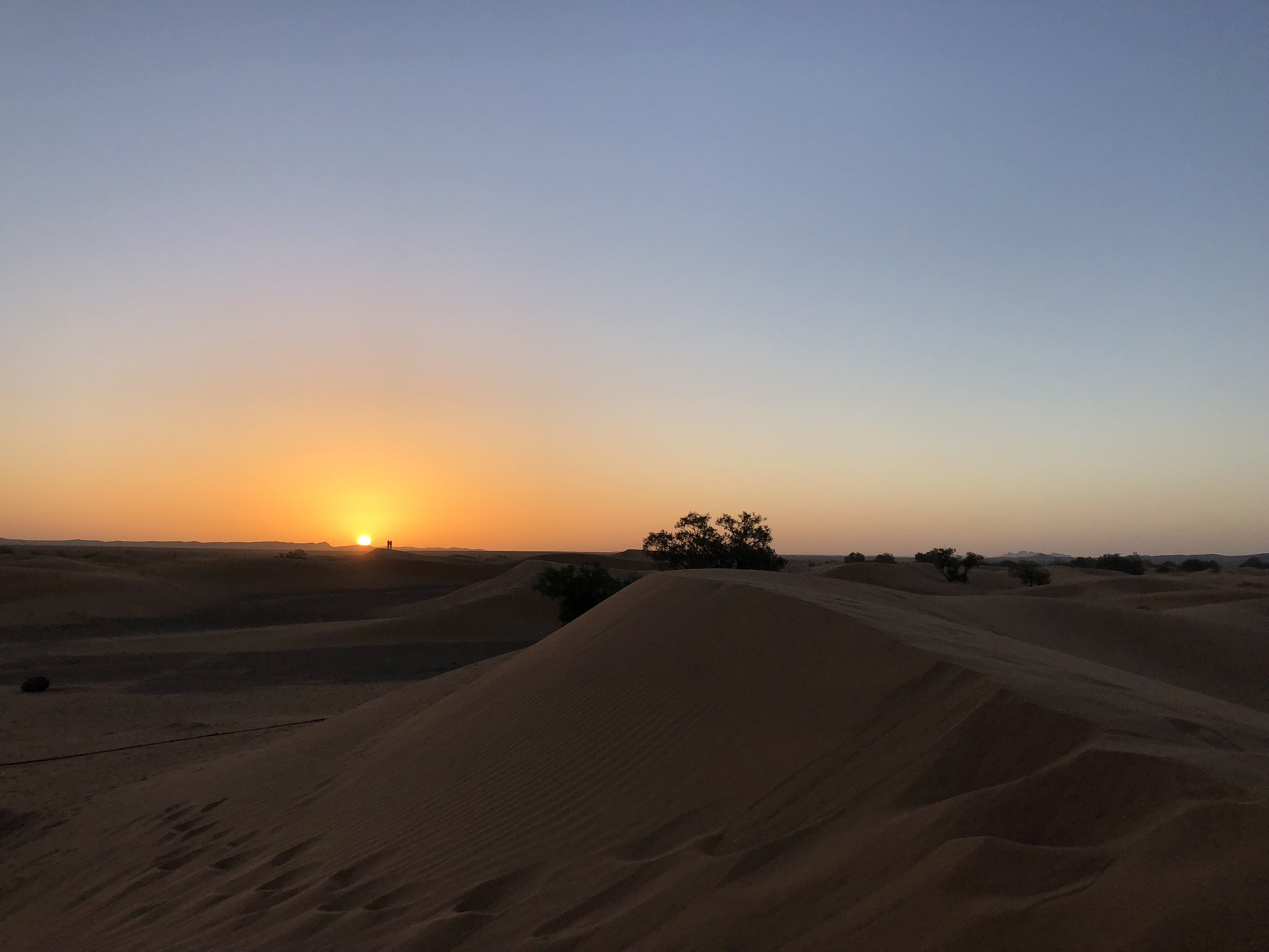 Wir übernachten draussen im «Sahara Sunny Luxury Camp», was sehr schön, jedoch auch sehr kalt ist. Zwar bin ich mit meinem dicken Pyjama gut eingepackt, freue mich jedoch über die vielen Decken, die uns zur Verfügung stehen.