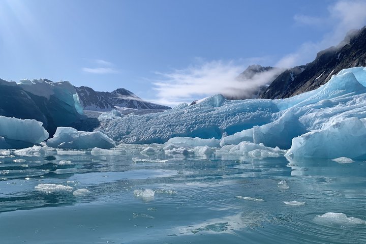 Die Natur in Spitzbergen ist einzigartig und wunderschön. Wohl dank unserem Wetterglück ergibt sich ein unglaubliches Farbenspiel der Gletscher, Eisberge und Eisskulpturen. Allesamt strahlen in tiefem blau. Ich bin beeindruckt.