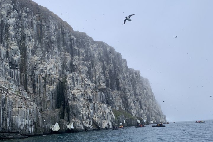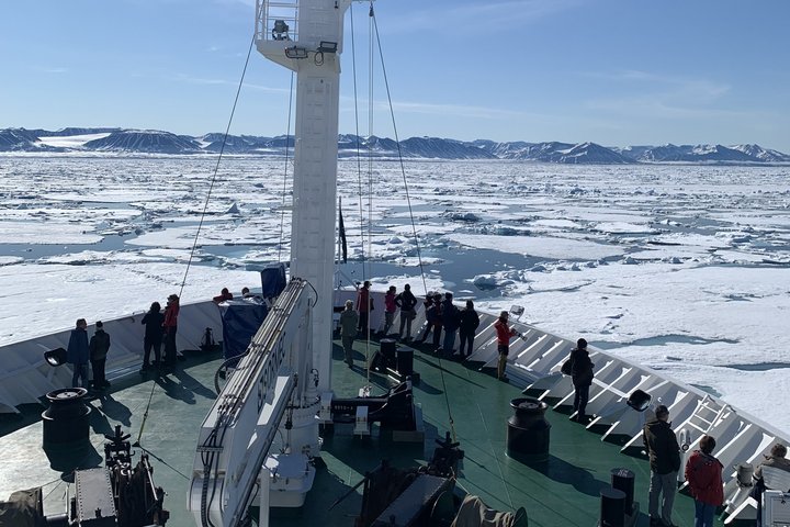 Unsere Expeditionsleiter*innen kunden den Ort des Landganges aus, danach sind wir dran. Sie müssen sich sicher sein, dass keine hungrigen Eisbären in unserer Nähe sind. Ob wir einen sichten werden? Nicht an diesem Tag ...