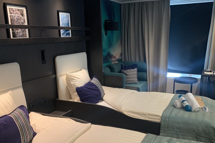 - Grosszügige Doppelkabinen mit Fenster, Drei- und Vierbettkabinen mit Bullauge, die «Grand Suite» verfügt zudem über einen Balkon