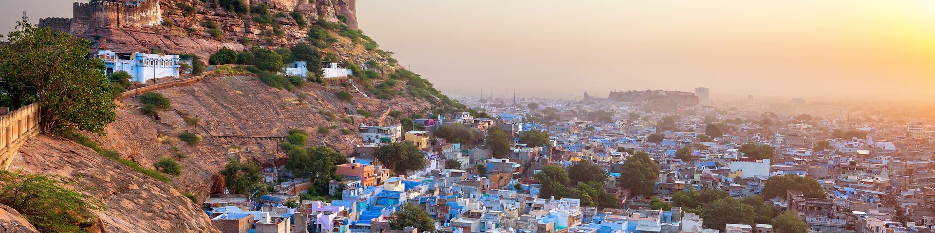 Frühmorgens begeben Sie sich mit dem Zug nach Jodhpur. Nach einer kurzen Erholung besuchen Sie den imposanten Mehrangarh Fort, der 1459 von Rao Jodha erbaut wurde und als Kulisse für mehrere bekannte Filme diente. Anschliessend besichtigen Sie das Jaswant Thada, ein elegantes Memorial aus weissem Marmor, das 1889 zum Gedenken an Maharaja Jaswant Singh errichtet wurde.