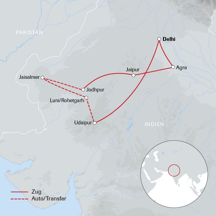 Mit dem Zug durch Nordindien: das goldene Dreieck und Rajasthan