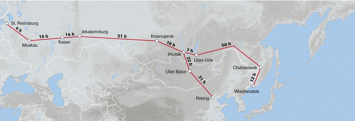 Aktuell und bis auf Weiteres sind Reisen nach Russland nicht möglich. Erfahren Sie unter dem Button «mehr erfahren», sobald die Transsib-Angebote wieder buchbar sind.