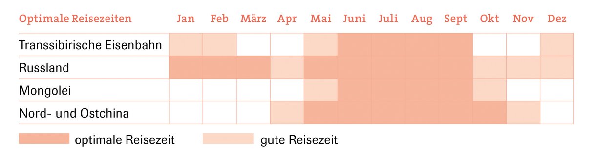 - Der jährliche Fahrplanwechsel in Russland, der Mongolei und in Teilen von China findet im Sommer statt.