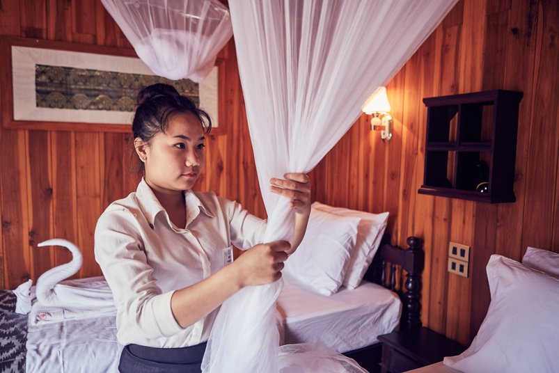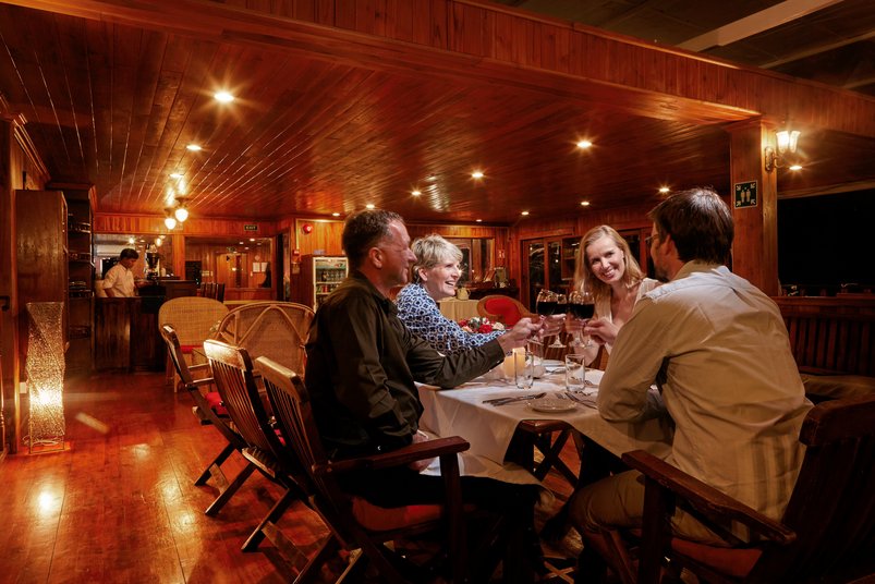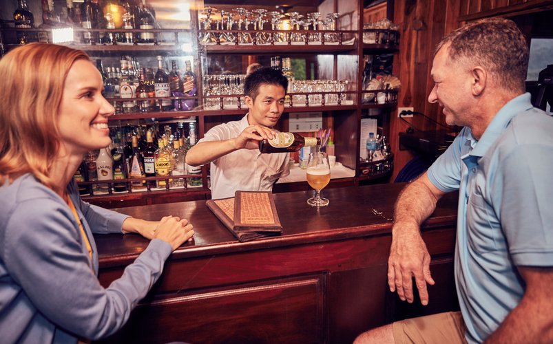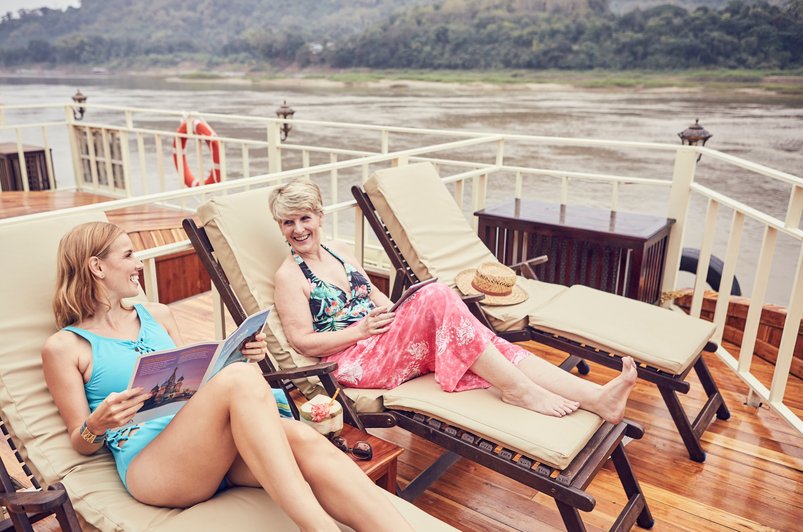 Das öffentliche Leben auf der «Mekong Pearl» spielt sich primär auf dem Oberdeck ab, wo sich das Restaurant und der Barbereich sowie das Sonnendeck befindet. Dort finden Sie auch Liegestühle, um ganz entspannt die vorbeiziehende Landschaft geniessen zu können. Auf dem Hauptdeck lädt das kleine Spa zum Relaxen ein.