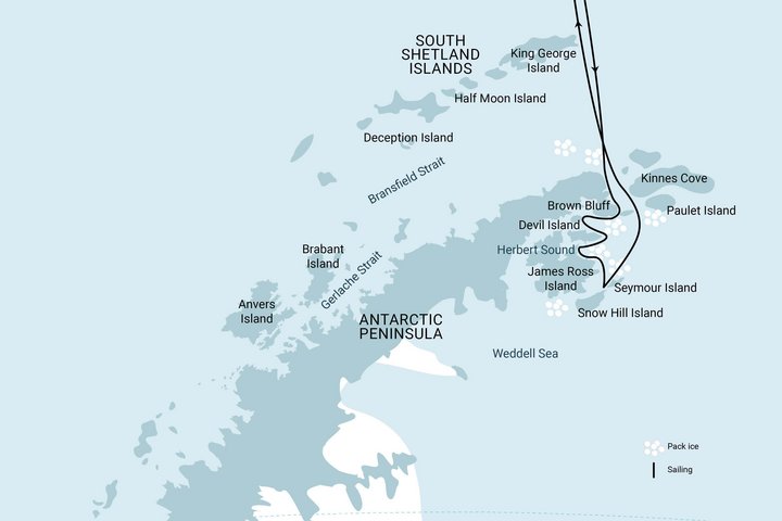 Devil Island – Heimat einer grossen Kolonie von Adeliepinguinen, ausserdem können Wanderungen zum Gipfel dieser Insel durchgeführt werden, von wo aus man einen herrlichen Ausblick hat.
