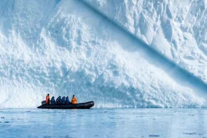 Halten Sie während Ihrer Fahrt in Richtung Antarktische Halbinsel Ausschau nach den ersten Tafel-Eisbergen und Pinguinen, die sich auf Eisschollen sonnen.