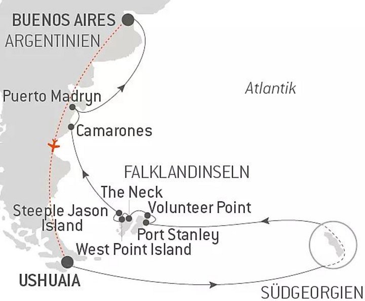 Expeditionskreuzfahrt Falkland Inseln, Südgeorgien und Halbinsel Valdés