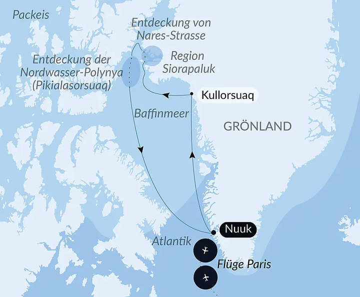 - Flug Paris – Nuuk – Paris, in Economy-Klasse