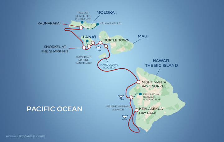Erleben Sie ein einzigartiges "Aloha" an Bord der Boutique-Yacht «Safari Explorer» auf dieser Reise zu vier hawaiianischen Inseln. Auf Ihrer Abenteuer-Kreuzfahrt erkunden Sie Molokai, Lana'i, Maui und Hawai'i, die Hauptinsel.