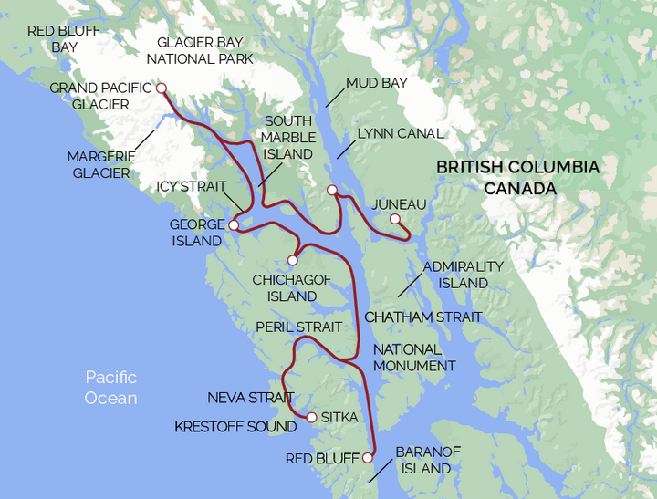 Mit rund 33'000 Quadratkilometer Fläche (ca. 3/4 der Grösse der Schweiz!) hat dieses UNESCO-Weltkulturerbe und Biosphärenreservat gewaltige Dimensionen. Hier können Sie unter anderem auf Papageientaucher, Trottellummen oder Marmelalks treffen. Auf South Marble Island bestehen gute Chancen, eine Kolonie von Seelöwen beobachten zu können. Die Kolonie werden Sie voraussichtlich zuerst riechen bevor Sie sie sehen. Halten Sie zudem Ausschau nach Bergziegen und Bären, die sich am Fluss aufhalten. Weitere Höhepunkte sind der Margerie- und Grand Pacific-Gletscher sowie Robben, die sich auf abgebrochenen Eisschollen tummeln.