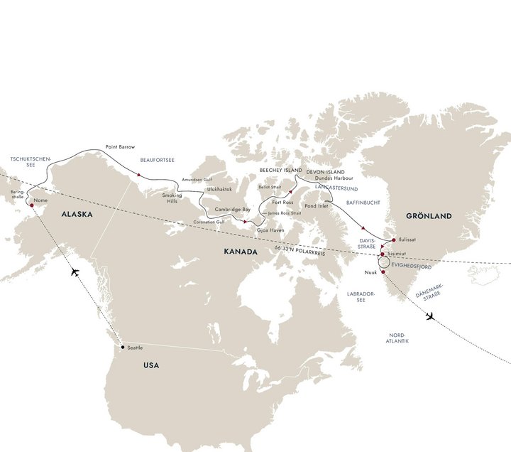 Kommen Sie an Bord eines modernen Expeditionskreuzfahrtschiffes auf diese aussergewöhnliche Expeditions-Seereise, während der Sie die sagenumwobene Nordwestpassage von Alaska bis nach Grönland befahren.