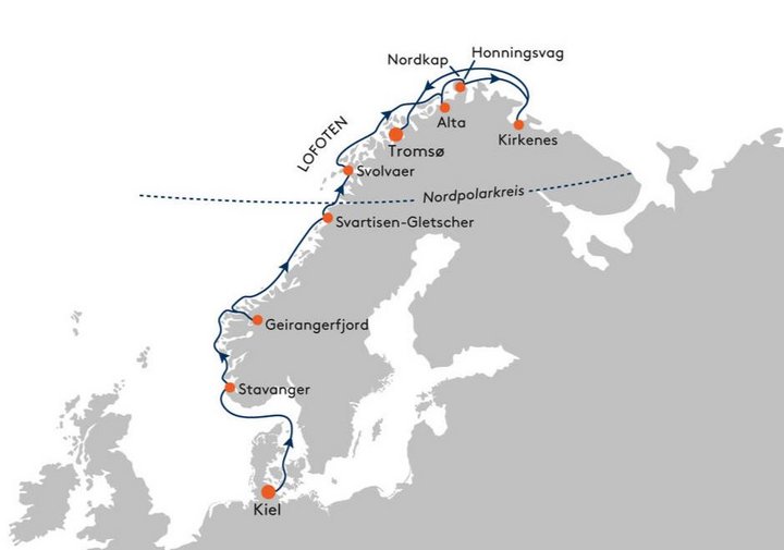Weisse Landschaften, tiefer Schnee und zugefrorene Seen in einsamen Wäldern – im Winter erleben Sie die Natur im Norden Europas von einer ganz neuen Seite und besonders intensiv bei zahlreichen Outdoor-Aktivitäten. Kommen Sie an Bord und erfüllen Sie sich den Traum einer aussergewöhnlichen Schiffsreise entlang Norwegens Küste. Und über allem strahlt das Polarlicht, das Sie bei klarem Himmel am besten von Deck aus mit etwas Glück immer wieder bestaunen. Perfekter Auftakt Ihrer Reise sind unsere Vorprogramme, mit denen Sie Tromsø als „Tor zum Eismeer“ kennenlernen oder das schneebedeckte Umland auf sportliche Art und Weise intensiv erkunden.