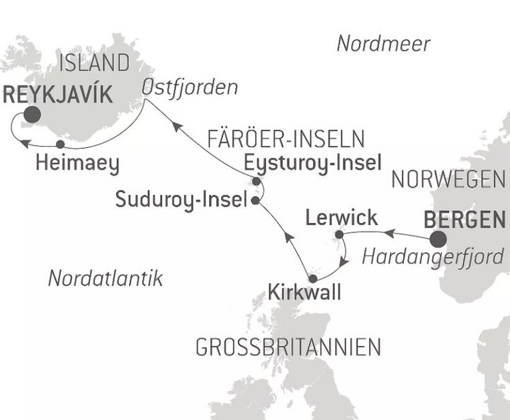 - Anreise nach Bergen und Rückreise ab Reykjavik